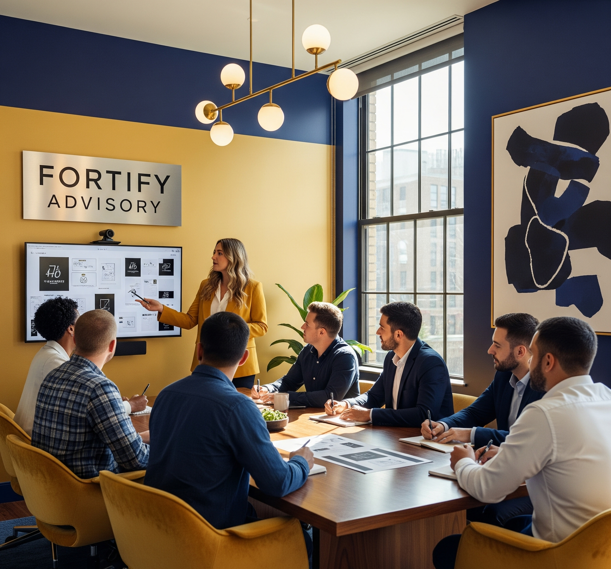 Fortify Advisory team meeting discussing the hidden problems in professional services marketing